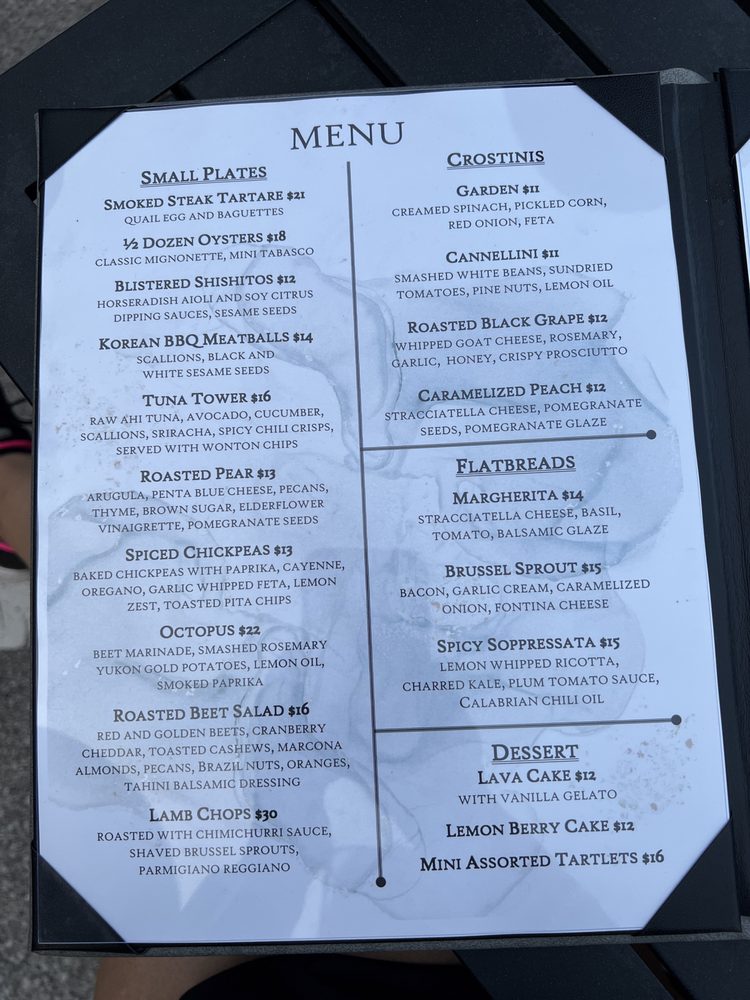 Patina Wine Bar is a trendy and classy establishment located in Park Ridge, IL. Offering tapas, small plates, cocktails, and an extensive wine selection, this spot is perfect for a night out. The menu boasts delicious options like brussels sprout flatbread, tuna tower, and cannellini crostini, all receiving rave reviews from customers. The intimate space and attentive staff create a welcoming atmosphere, making patrons feel comfortable and valued. The exceptional service, creative charcuterie boards, and tasty cocktails make Patina Wine Bar a must-visit destination for food and wine enthusiasts. Don't miss out on their seasonal specials and be sure to save room for the decadent lava cake. Indulge in the inspired dishes and flavorful wines for a truly unforgettable dining experience.